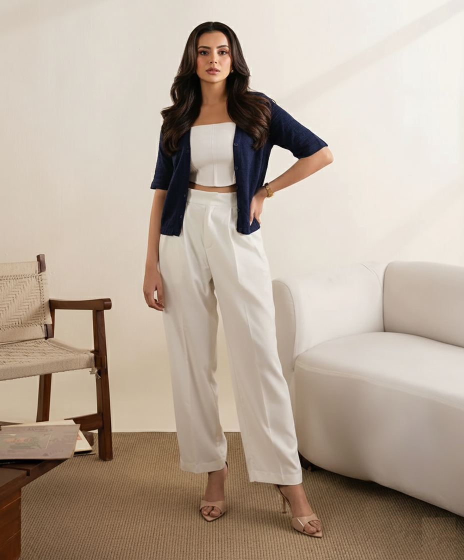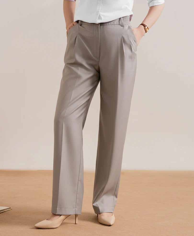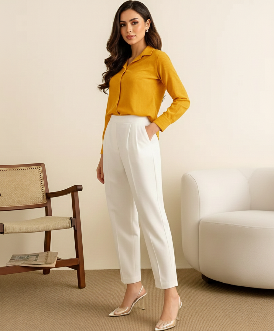 Cream Formal Straight Fit Pants (Women)