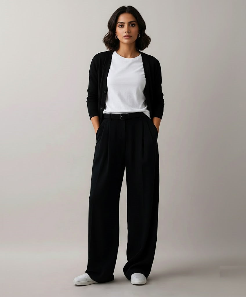 Black Wide Leg Tailored Pants (Women)